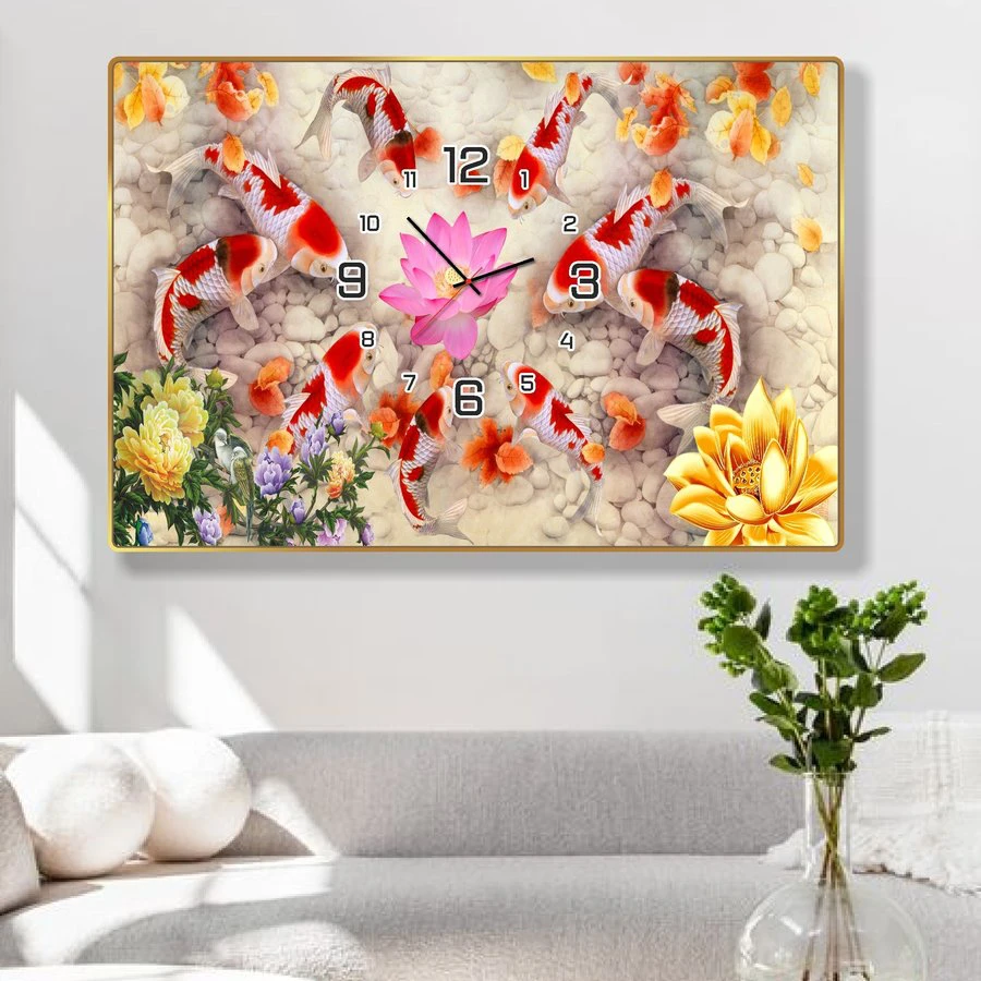 Tranh đồng hồ TP HCM treo tường cửu ngư quần hội hot