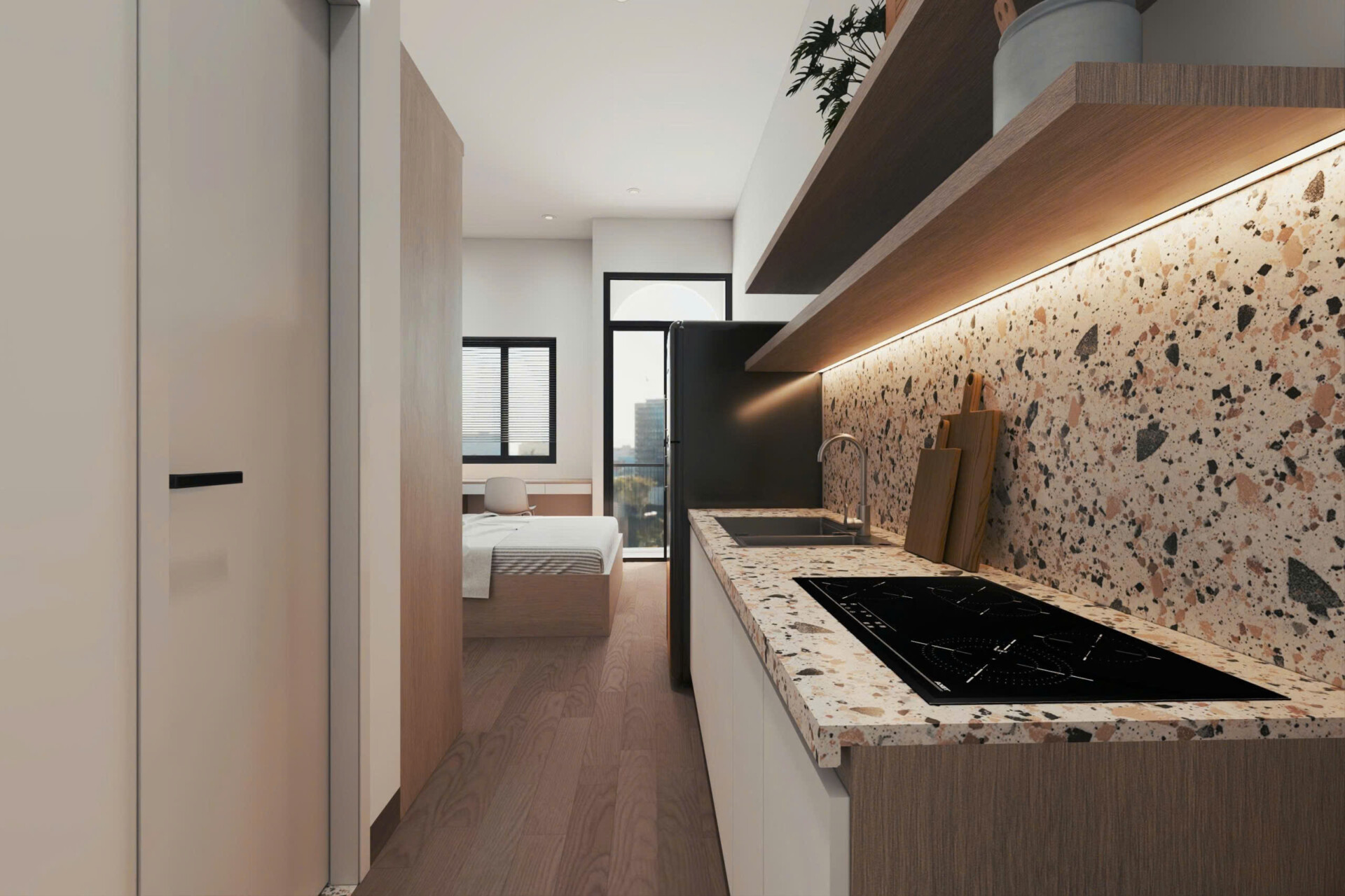 Một ưu điểm mà ít người nhận ra là thi công căn hộ trọn gói giúp đảm bảo tính đồng bộ về thẩm mỹ. Từ sàn, tường, trần, ánh sáng đến nội thất, tất cả được thiết kế và thi công theo một ngôn ngữ thống nhất, tạo nên tổng thể hài hòa, chuyên nghiệp như các căn hộ mẫu cao cấp. Điều này không chỉ giúp tăng giá trị sử dụng, mà còn góp phần nâng cao giá trị bán lại hoặc cho thuê của căn hộ trong tương lai. Với xu hướng người trẻ tìm kiếm không gian sống “all-in-one”, đây chính là lợi thế lớn cho các chủ đầu tư biết nắm bắt cơ hội.