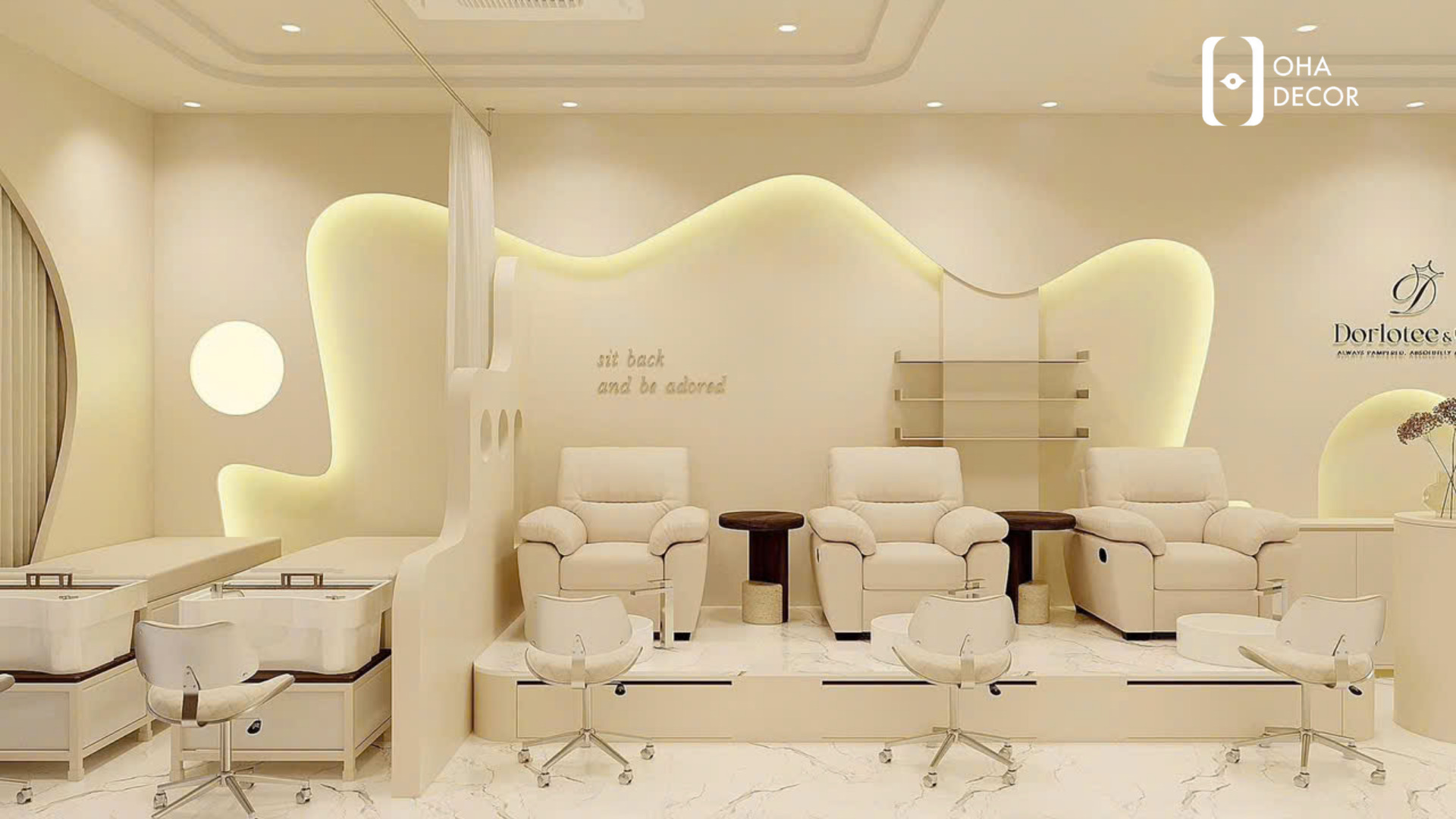 Bên cạnh đó, Oha Decor còn đồng hành cùng khách hàng xuyên suốt quá trình thiết kế thi công Nails Room tone kem HCM từ ý tưởng đến hoàn thiện. Đội ngũ đảm bảo tiến độ thi công, kiểm soát chất lượng và tối ưu chi phí đầu tư. Sự tận tâm trong từng chi tiết giúp mang lại không gian hoàn chỉnh, hiện đại và hiệu quả. Đây cũng là lý do Oha Decor được nhiều chủ salon tin tưởng lựa chọn.