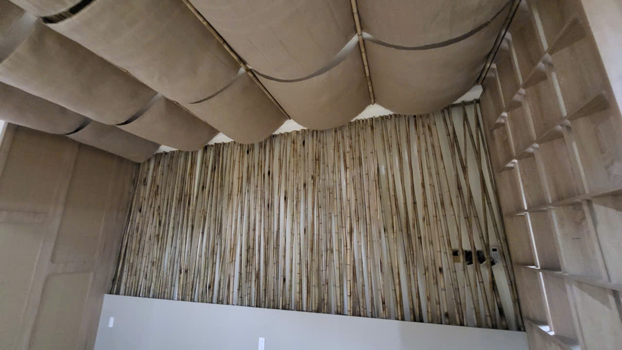 Ngoài ra, việc sử dụng vật liệu tre trúc trong hệ trần và các chi tiết trang trí còn mang lại cảm giác nhẹ nhàng, gần gũi với thiên nhiên cho toàn bộ không gian. Những đường nét mộc mạc kết hợp cùng ánh sáng ấm áp giúp tạo nên bầu không khí thư giãn, dễ chịu ngay khi bước vào. Điều này góp phần nâng cao trải nghiệm của thực khách, khiến họ cảm thấy thoải mái và muốn quay lại nhiều lần. Nhờ đó, quán không chỉ đẹp về thẩm mỹ mà còn ghi điểm mạnh về cảm xúc và sự thân thiện.