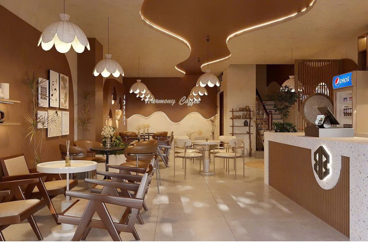 Concept thiết kế được phát triển theo hướng tạo dấu ấn riêng cho Pinacle Land Coffee. Các yếu tố như màu sắc, vật liệu và cách bố trí nội thất được liên kết chặt chẽ. Điều này giúp không gian có tính nhận diện rõ ràng và dễ ghi nhớ. Đồng thời hỗ trợ hoạt động truyền thông và check-in. Tổng thể góp phần xây dựng hình ảnh thương hiệu lâu dài.
