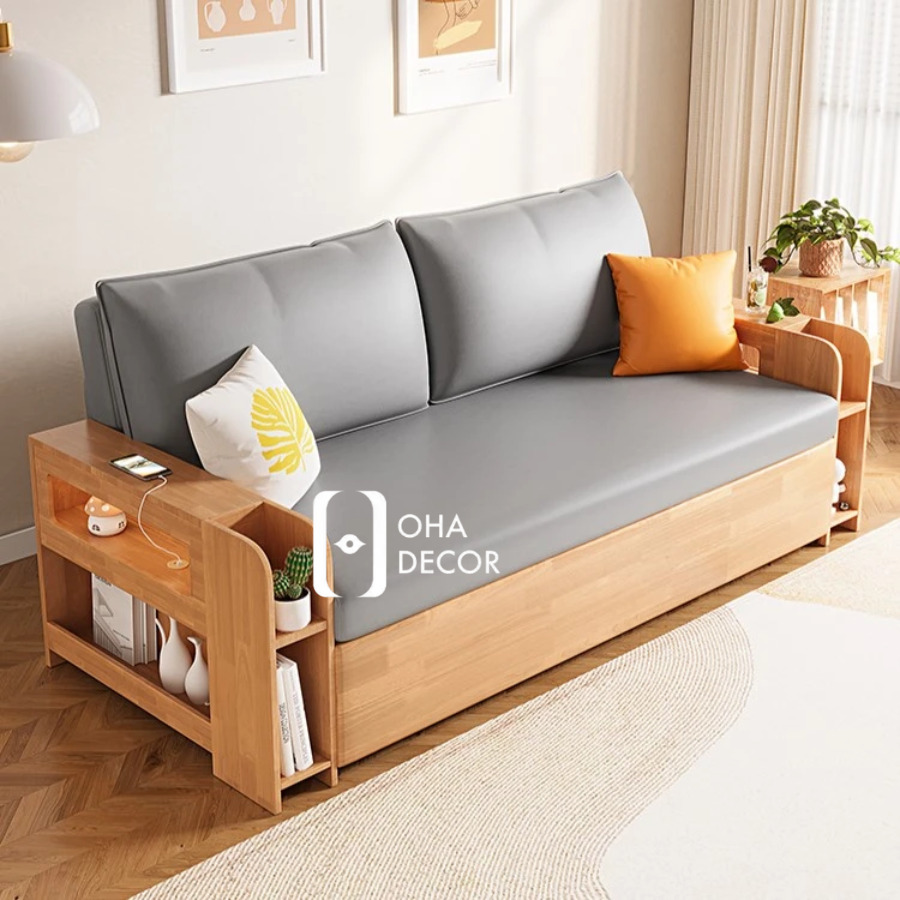 Ngoài chức năng nghỉ ngơi, nhiều mẫu sofa cao cấp còn tích hợp các hộc chứa đồ hoặc ngăn kéo tiện lợi, giúp tận dụng không gian hiệu quả, giữ phòng khách luôn gọn gàng và ngăn nắp. Thiết kế linh hoạt cho phép sofa có thể dễ dàng phối hợp với các món đồ nội thất khác, từ bàn trà, kệ sách cho đến các vật trang trí, tạo sự đồng bộ và hài hòa trong tổng thể không gian. Với sự kết hợp giữa tính năng tiện ích, độ bền cao của gỗ tự nhiên và tính thẩm mỹ tinh tế, sofa trở thành món đồ nội thất vừa mang giá trị sử dụng lâu dài, vừa thể hiện gu thẩm mỹ và phong cách sống đẳng cấp của gia chủ.
