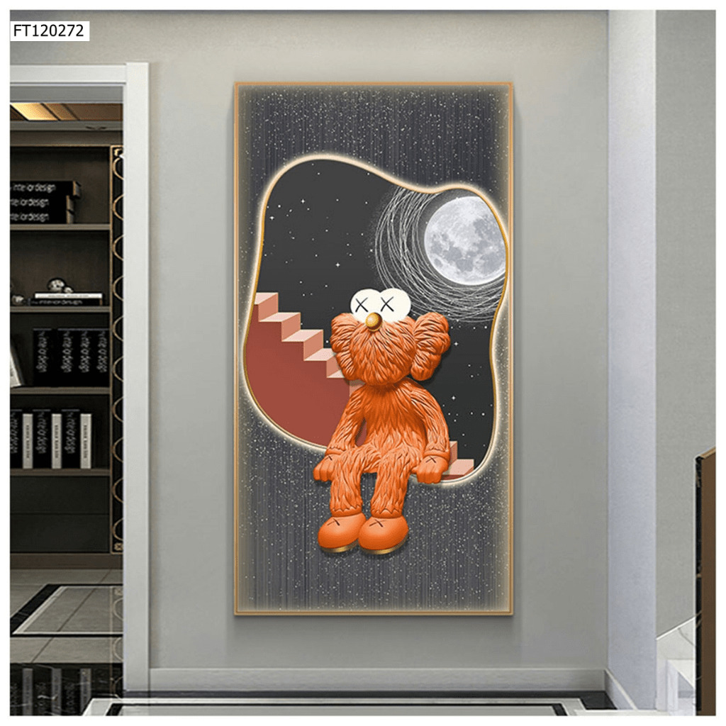 Tranh 3D Led Cắt Gấu Kaws Bearbrick Toy Tráng Gương Dọc Trang Trí Quán Cafe OHA Decor