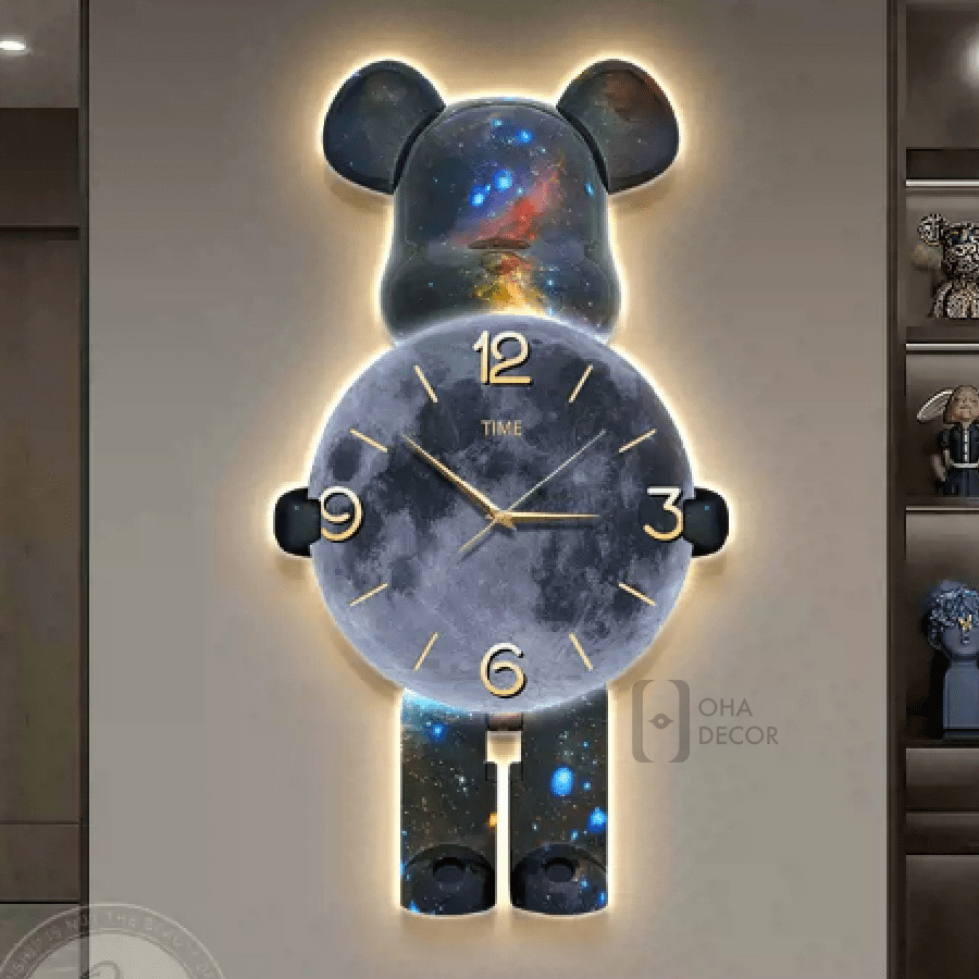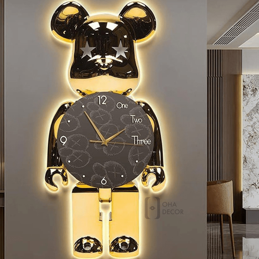 – Tên sản phẩm: Tranh Treo Tường Đồng Hồ Đèn 3D LED Tráng Gương Cao Cấp Gấu Bearbrick Trang Trí Phòng Khách, Phòng Ngủ OHA Decor