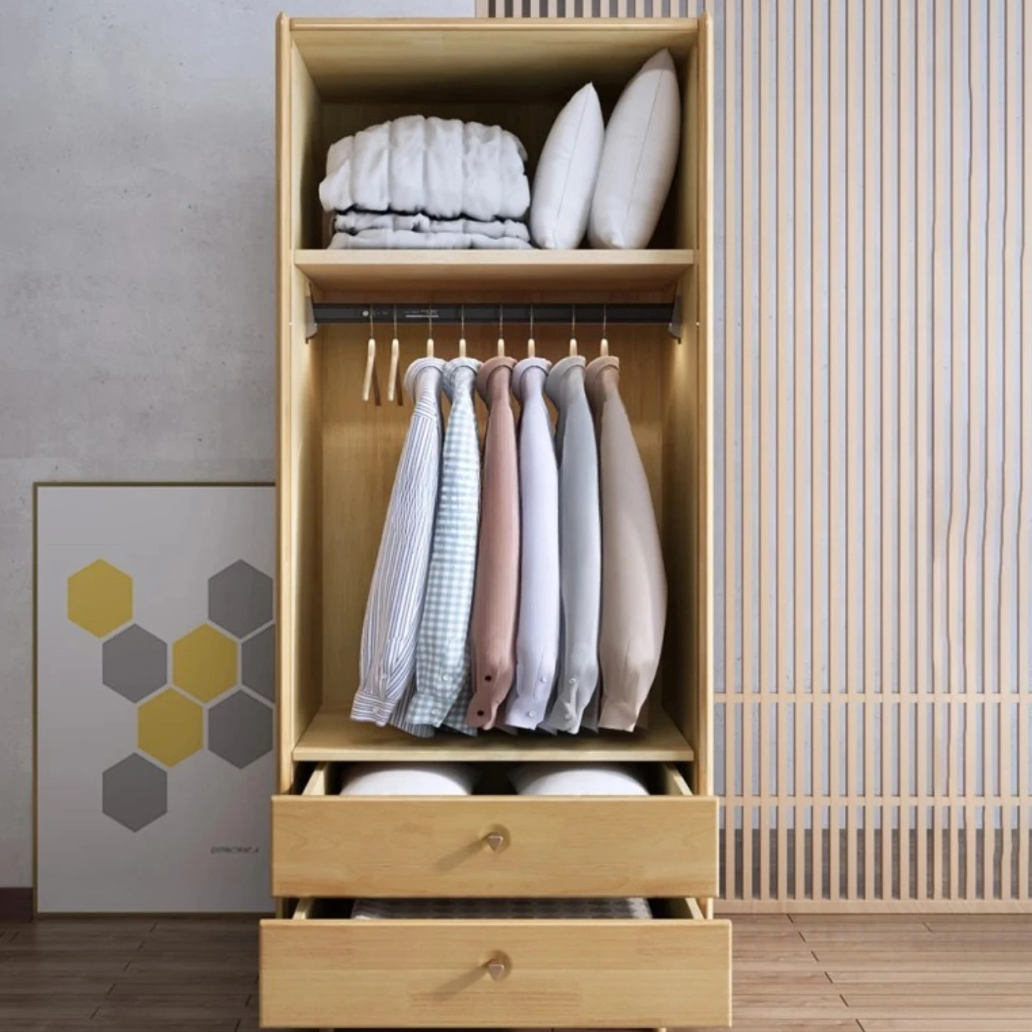 Giữ đồ luôn phẳng phiu, sạch sẽ: Không gian bên trong tủ được chia thành nhiều khu vực: khoang treo quần áo dài – ngắn, ngăn gấp đồ, hộc phụ kiện, giúp quần áo được sắp xếp ngăn nắp, hạn chế nhăn gãy. Đặc biệt, gỗ tự nhiên có khả năng điều hòa độ ẩm nhẹ, giúp không khí trong tủ luôn khô thoáng, tránh hiện tượng ẩm mốc – điều đặc biệt hữu ích tại những nơi có độ ẩm cao như Sài Gòn, Hà Nội hay Đà Nẵng.